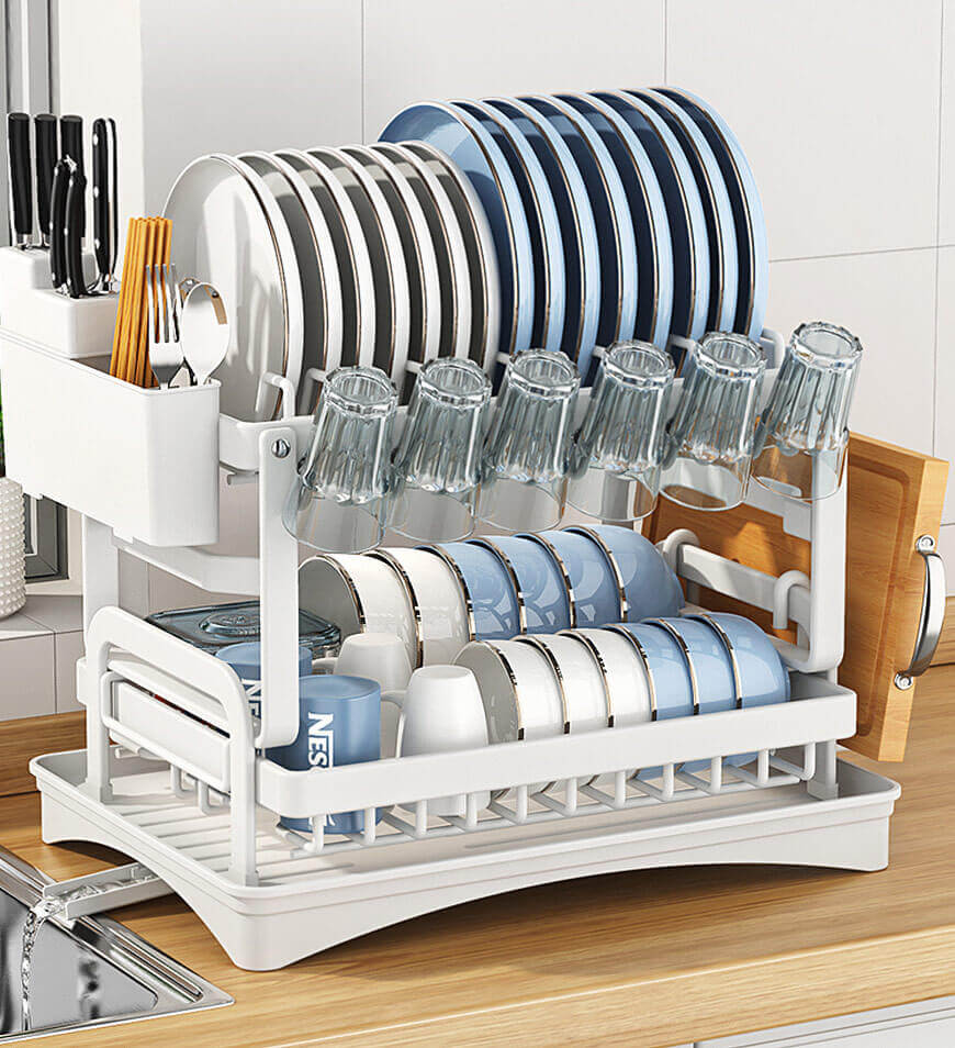 Organisieren Sie Ihre Küche mit dem 2-Ebenen-Abtropfgestell aus Edelstahl